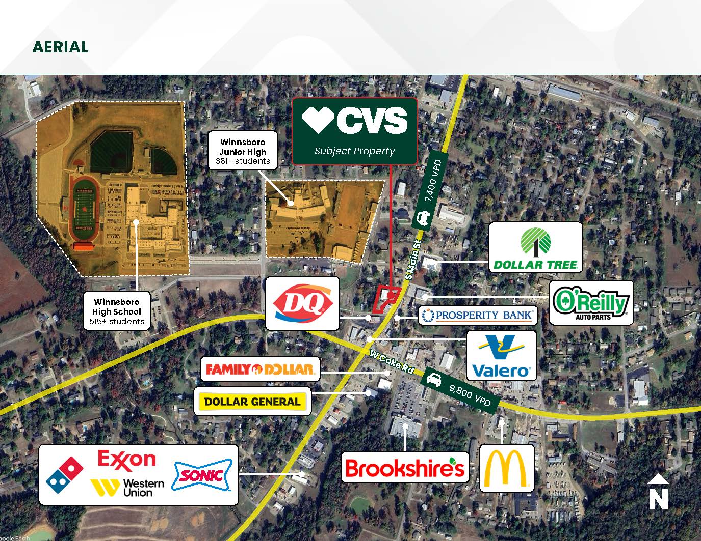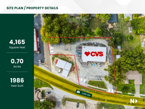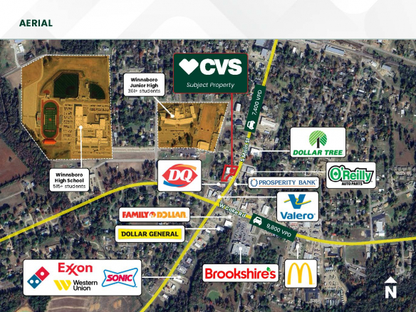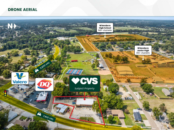 STONECLIFF is pleased to present the exclusive listing for a CVS located at 604 South Main St, Winnsboro, Texas 75494. The site consists of roughly 4,165 rentable square feet of retail space on an estimated 0.70-acre parcel of land. This CVS is subject to a 17-year Absolute Triple Net (NNN) Lease with 5+Years Remaining. The annual rent is $48,500 with scheduled 3% in each Option Period.