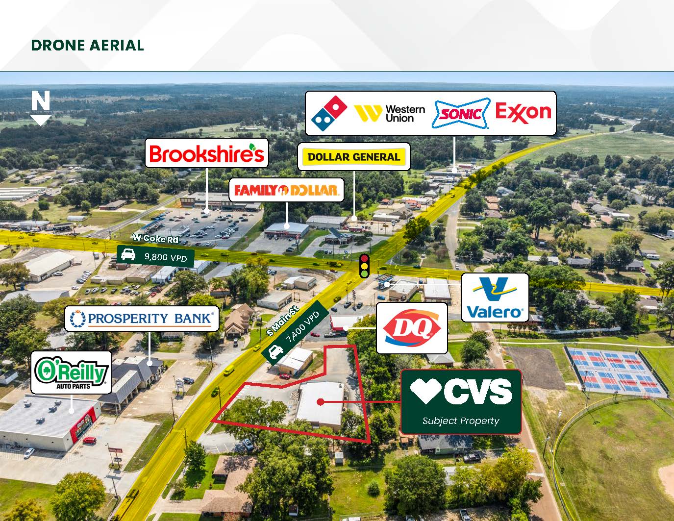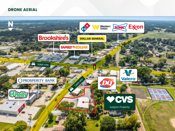 - Dense retail corridor with tenants O’Reilly Auto Parts, Dairy Queen, Valero, McDonalds, Brookshires, Family Dollar, Dollar General, Sonic, Prosperity Bank & more
